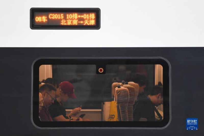 8月1日,在北京南站,旅客乘坐京津城際列車(chē)出行。