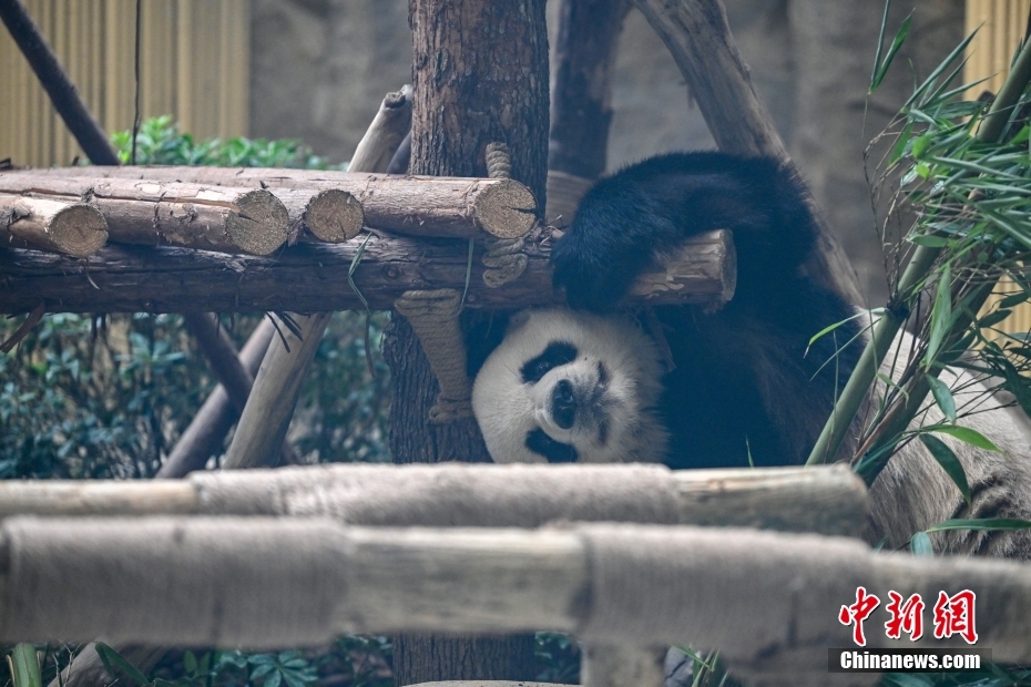 8月1日,參加第31屆世界大學(xué)生夏季運(yùn)動(dòng)會(huì)的大學(xué)生運(yùn)動(dòng)員們參觀成都大熊貓繁育研究基地。成都大運(yùn)會(huì)期間,成都大熊貓繁育研究基地成為參賽代表團(tuán)的熱門打卡點(diǎn)。圖為成都大運(yùn)會(huì)吉祥物“蓉寶”的原型——大熊貓芝麻憨態(tài)可掬。中新社記者 趙文宇 攝