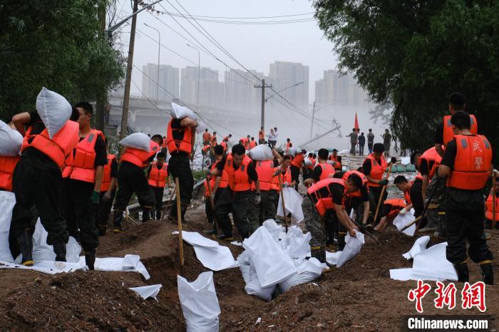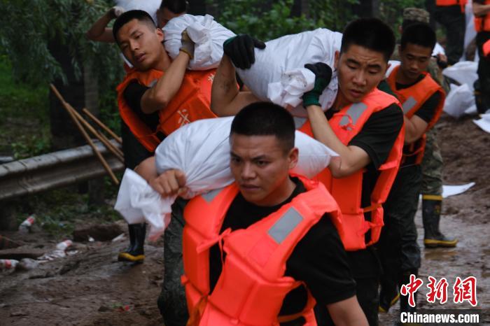 7月31日,永定河京原漫水橋附近發(fā)生漫溢,洶涌的洪水越過(guò)堤壩、漫上河岸。為保障沿岸居民安全,北京市門(mén)頭溝區(qū)水務(wù)局與區(qū)武裝部、區(qū)防汛抗旱指揮部實(shí)行統(tǒng)一協(xié)調(diào)調(diào)度,由武警北京總隊(duì)機(jī)動(dòng)第三支隊(duì)200名官兵對(duì)該處實(shí)施封堵作業(yè)。
