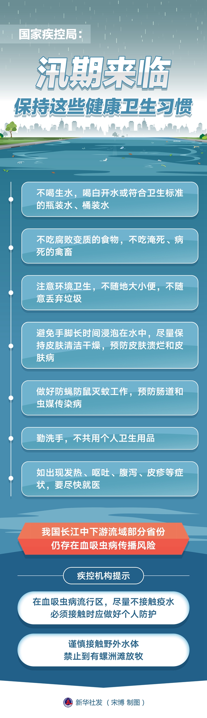 我國(guó)長(zhǎng)江中下游流域部分省份仍存在血吸蟲(chóng)病傳播風(fēng)險(xiǎn)。疾控機(jī)構(gòu)提示,在血吸蟲(chóng)病流行區(qū),盡量不接觸疫水,必須接觸時(shí)應(yīng)做好個(gè)人防護(hù)。謹(jǐn)慎接觸野外水體,禁止到有螺洲灘放牧。
