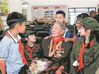 上圖:丁寶鑒生前到丹東市海華小學(xué)講述抗美援朝故事。安曉琳攝