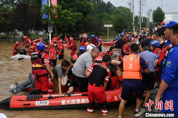圖為河北涿州受困民眾被救援。中新社記者 翟羽佳 攝
