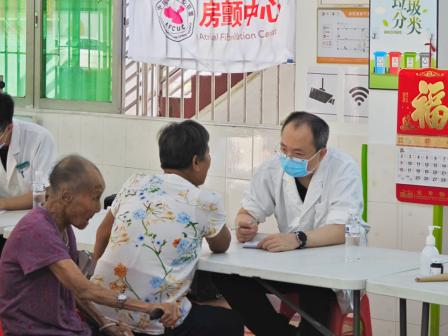 (佛山市中醫(yī)院心內(nèi)科賀青軍醫(yī)生開展房顫疾病宣教,攝/范云峰)