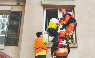 8月2日,河北省衡水市消防救援支隊(duì)在涿州轉(zhuǎn)移被困群眾。陳 健攝 (人民視覺)