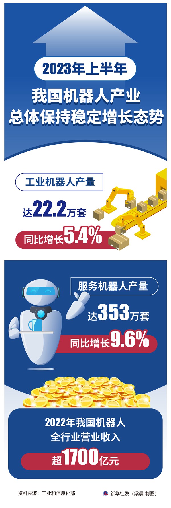 新華社北京8月3日電(記者溫競(jìng)?cè)A)工業(yè)和信息化部裝備工業(yè)一司副司長汪宏日前在2023世界機(jī)器人大會(huì)新聞發(fā)布會(huì)上說,今年上半年,我國機(jī)器人產(chǎn)業(yè)總體保持穩(wěn)定增長態(tài)勢(shì),工業(yè)機(jī)器人產(chǎn)量達(dá)22.2萬套,同比增長5.4%,服務(wù)機(jī)器人產(chǎn)量達(dá)353萬套,同比增長9.6%。