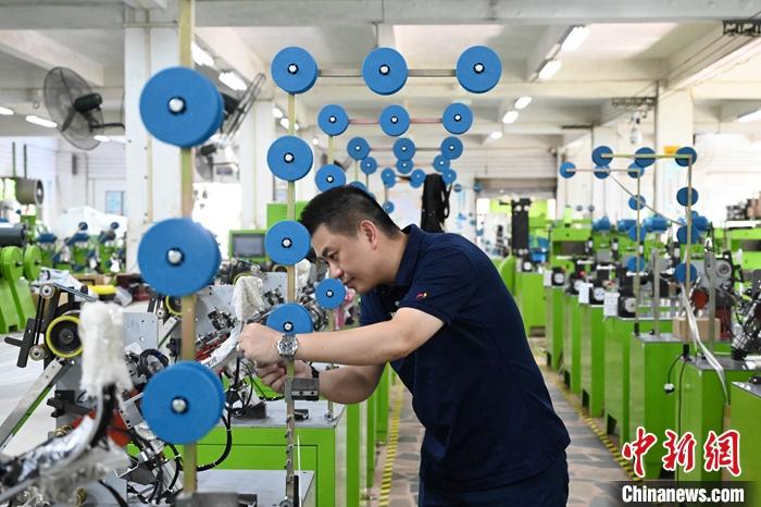 圖為7月10日,廣東佛山,劉偉立在檢查工廠制造的拉鏈。 中新社記者 陳楚紅 攝