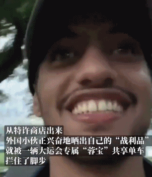 社交媒體上,一位剛從特許商店出來的外國小伙前一秒還在展示自己的“戰(zhàn)利品”,后一秒,就被“蓉寶”共享單車吸引了注意力?!癙anda Bike!”,對“蓉寶”單車愛不釋手的他,甚至將自行車與“戰(zhàn)利品”一起扛在了肩上。