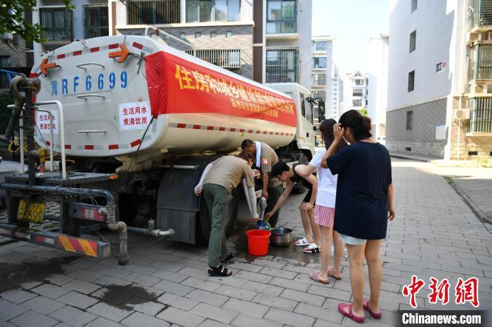 8月5日,居民在涿州市同善園小區(qū)取水。翟羽佳 攝