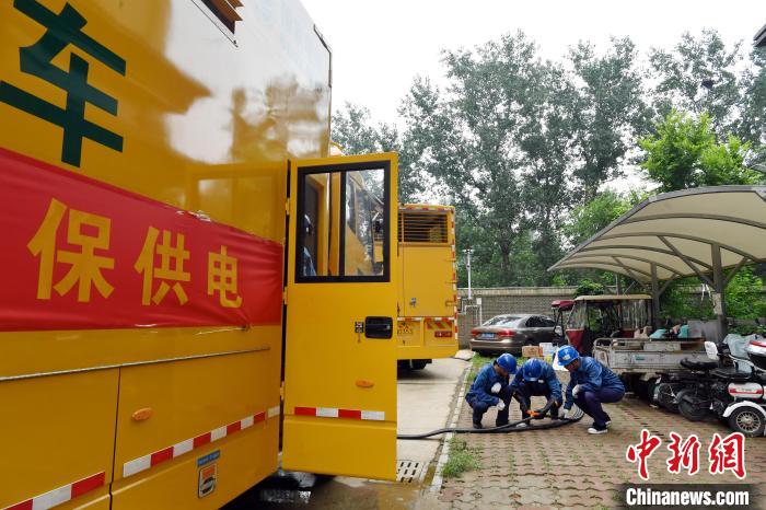 8月4日,應(yīng)急發(fā)電車正在涿州市因?yàn)?zāi)斷電居民社區(qū)進(jìn)行應(yīng)急供電?!〉杂鸺?攝