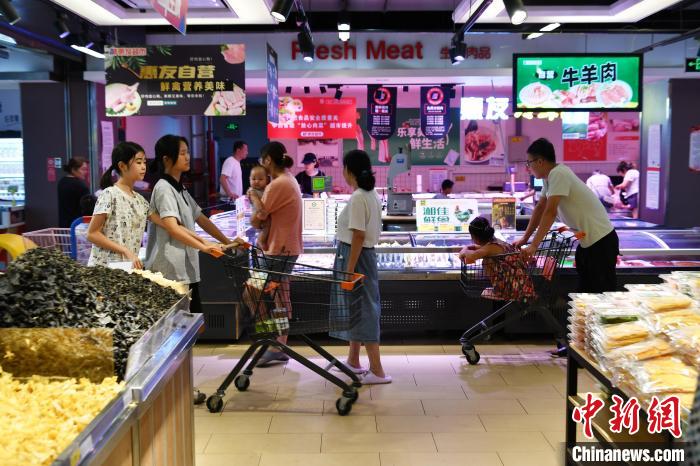 8月5日,市民在涿州市一家連鎖超市購物?!〉杂鸺?攝