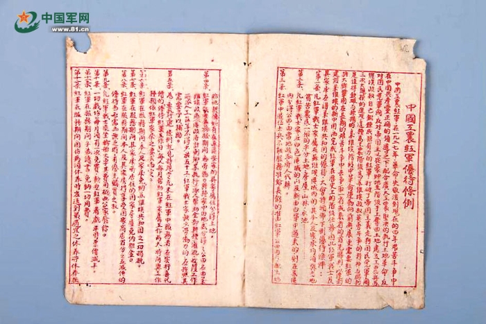 1931年11月,中華蘇維埃第一次全國代表大會召開。會議通過了《中國工農(nóng)紅軍優(yōu)待條例》,從法律層面為紅軍和紅軍家屬的權(quán)益提供了保障?!稐l例》開篇指出:“中國工農(nóng)紅軍在1927年革命失敗后到現(xiàn)在的四年艱苦斗爭中,在中國共產(chǎn)黨正確的領(lǐng)導(dǎo)之下,配合廣大工農(nóng)堅決地執(zhí)行土地革命,反對國民黨軍閥,反對帝國主義,從豪紳地主階級手上奪回土地,建立工農(nóng)兵蘇維埃政權(quán),自己鍛煉成強有力的紅軍……蘇維埃階段中革命運動向前開展,更需要紅軍的擴大與鞏固,在長期的艱苦斗爭中去爭取一省和數(shù)省的首先勝利,以達(dá)到建設(shè)蘇維埃的新中國,而完成紅軍在歷史上的階段任務(wù)?!?/p>