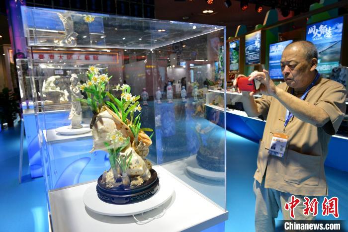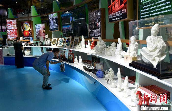 圖為福建文創(chuàng)品吸引參觀者。呂明 攝