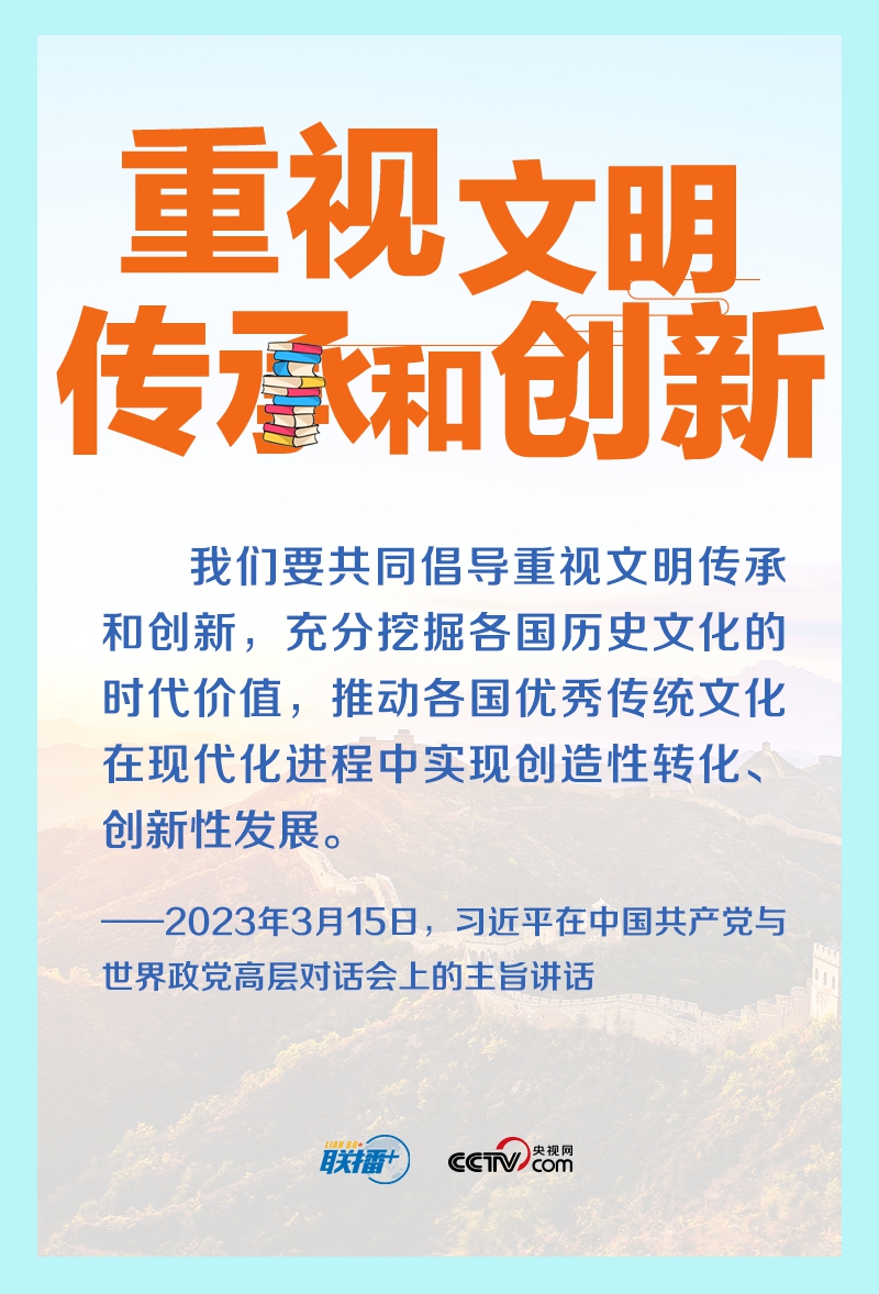 聯(lián)播+ 重視文明傳承和創(chuàng)新,是文明交流互鑒的動力源泉。2023年年初,習近平總書記在中國共產(chǎn)黨與世界政黨高層對話會上首次提出全球文明倡議,這是繼全球發(fā)展倡議、全球安全倡議后,新時代中國為國際社會提供的新的國際公共產(chǎn)品。