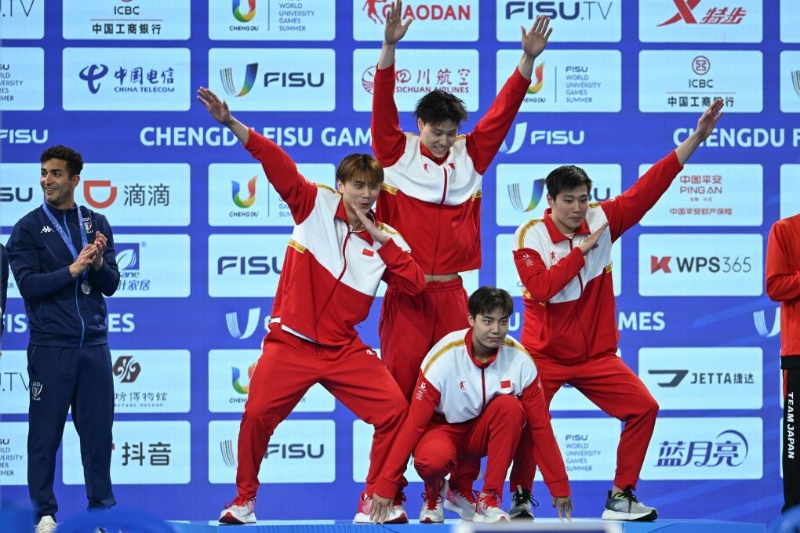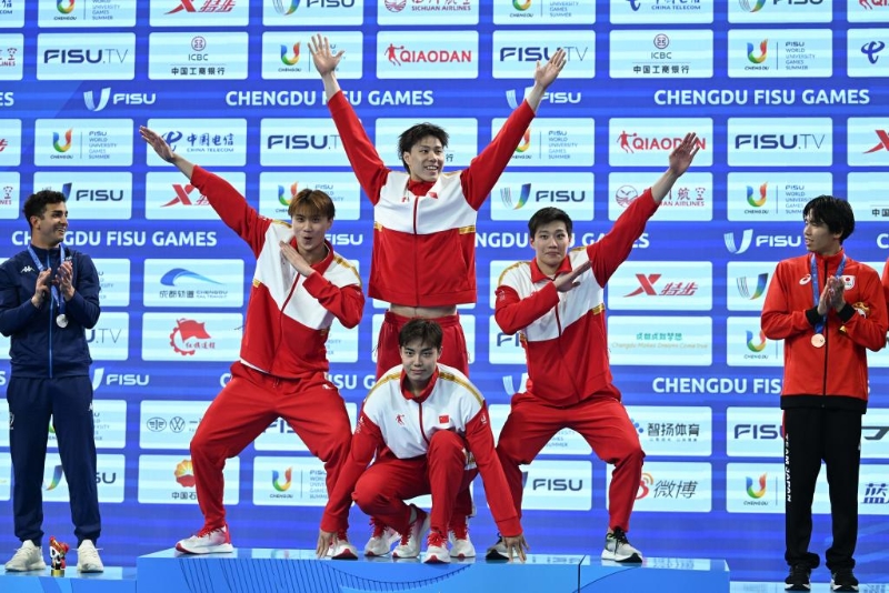 當(dāng)日,在成都舉行的第31屆世界大學(xué)生夏季運(yùn)動(dòng)會(huì)游泳男子4x100米混合泳接力決賽中,由王谷開(kāi)來(lái)、覃海洋、陳俊兒、林濤組成的中國(guó)隊(duì)以3分32秒58的成績(jī)奪得冠軍。