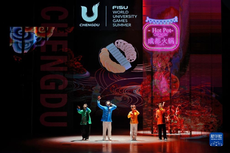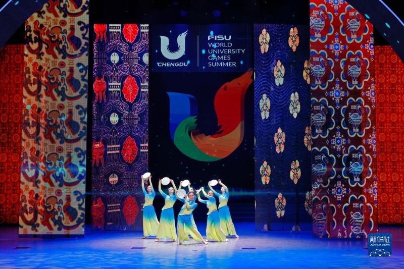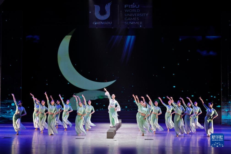 8月7日,成都大學(xué)的學(xué)生表演《錦城印象》。新華社記者 沈伯韓 攝