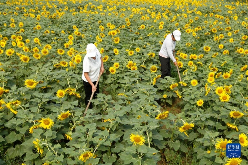 8月8日,農(nóng)民在河南省濟源市克井鎮(zhèn)北樊村地黃地里拔草。