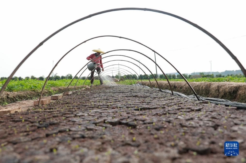 8月8日,在湖南省衡陽市衡陽縣西渡鎮(zhèn)新橋村,村民在培育蔬菜苗。