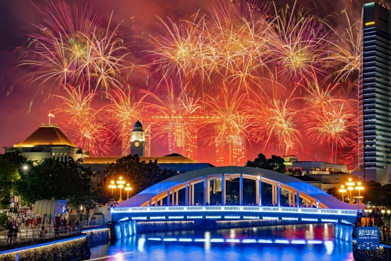 這是8月9日在新加坡國(guó)慶慶典上拍攝的煙花。新華社發(fā)(鄧智煒攝)