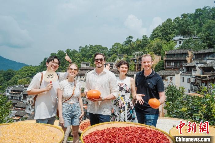 8月8日,包括米蓮娜(右二)在內(nèi)的40余位海內(nèi)外網(wǎng)紅博主走進(jìn)西婺源篁嶺古村。程五坤 攝
