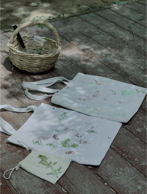 現(xiàn)場(chǎng)的游客親自將植物的色彩和紋路印在紙巾或帆布袋上