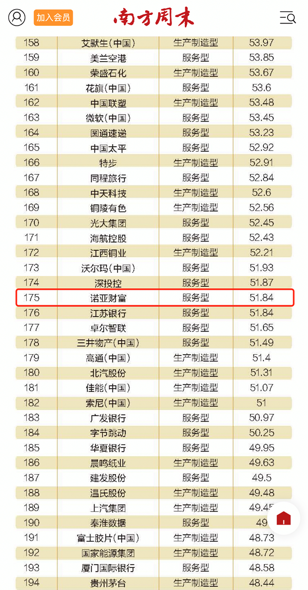 2023年7月28日,由南方周末主辦的第十五屆中國企業(yè)社會(huì)責(zé)任年會(huì)在廣州舉行,會(huì)上公布了中國企業(yè)社會(huì)責(zé)任排行榜,諾亞財(cái)富首次入選該榜單。?