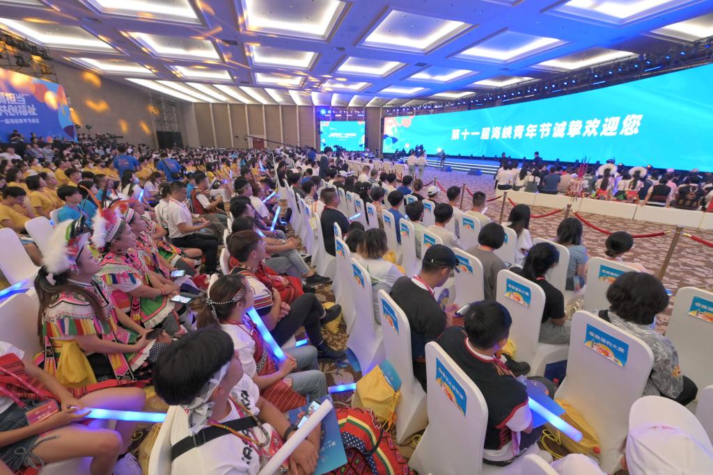 屬于兩岸青年的“嘉年華”在暖場歌舞《激情海青》和歡呼聲中拉開帷幕,多支由兩岸青年組成的“海峽青年團隊”走上舞臺,展示文化體育、鄉(xiāng)村振興、人才教育等領域的兩岸融合故事。