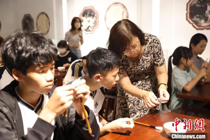 中新網(wǎng)湖州8月11日電(胡豐盛)“床前明月光,疑是地上霜。舉頭望明月,低頭思故鄉(xiāng)?!?月11日,近百名兩岸青少年學(xué)生及書法愛好者體驗(yàn)“同上一堂課、同寫一句詩”活動(dòng),一同臨摹了唐詩《靜夜思》中的詩句。