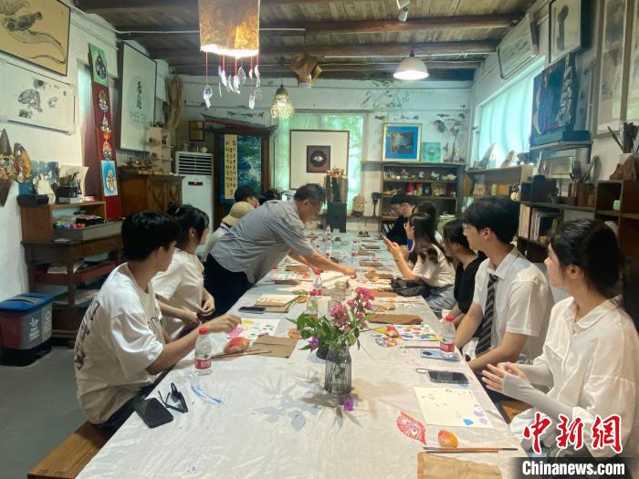 活動期間,臺灣大學(xué)生們在溫嶺石橋頭鎮(zhèn)參觀三透里文創(chuàng)園,體驗(yàn)扎染、蟹殼畫等非遺技藝——非遺傳承人陳祥來指導(dǎo)大家發(fā)揮想象力,用顏料在廢棄蟹殼上繪出自己心中的戲曲臉譜;扎染技藝?yán)蠋熓Y錦燕教大家通過紗、線、繩等工具,對織物進(jìn)行扎、縫、縛、綴、夾等多種形式的組合后染色,制成一件件富有創(chuàng)意的藝術(shù)品。