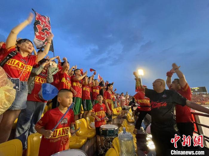 “戰(zhàn)斗!廣西隊!”8月12日晚,廣西平果體育場,歡呼聲響徹夜空,看臺上座無虛席,身著紅色球服的球迷將體育場染成了一片紅色的海洋,人們鉚足了勁唱山歌、玩人浪、搖旗擊鼓、吶喊助威。