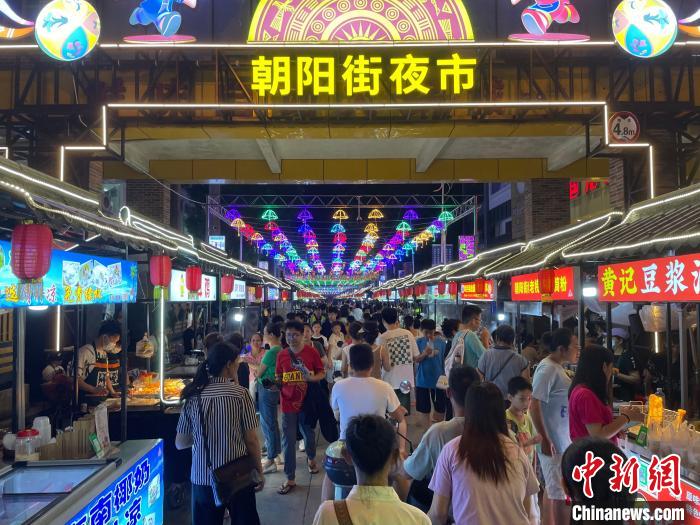8月12日晚,廣西百色平果市朝陽街夜市,行人摩肩接踵,煙火氣旺盛。中新社記者 陳秋霞 攝