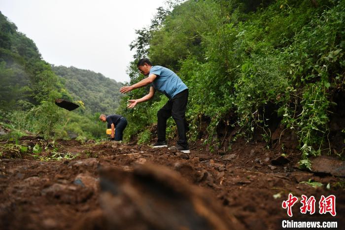 8月9日,河北省邢臺(tái)市臨城縣趙莊鄉(xiāng)梁家莊村一條正在修復(fù)的田間道路,該村村民自發(fā)在該路段清理碎石。中新社記者 翟羽佳 攝