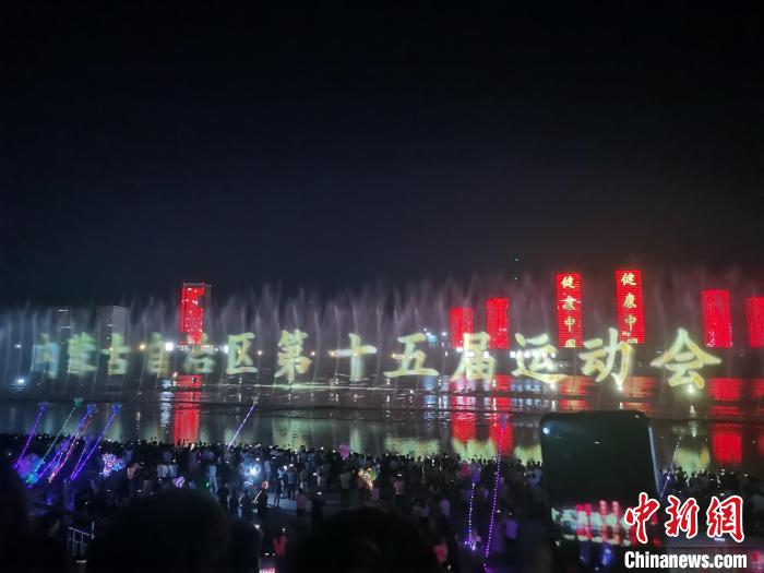 隨著噴泉忽上忽下地變換,李偉忽然驚叫起來(lái):“這不是水幕嗎,看,水幕上還打出‘內(nèi)蒙古自治區(qū)第十五屆運(yùn)動(dòng)會(huì)’(簡(jiǎn)稱(chēng)內(nèi)蒙古十五運(yùn))的字樣。”