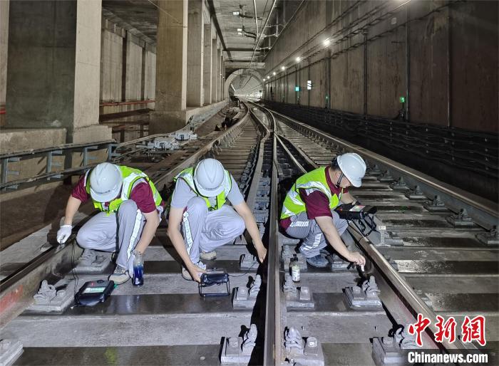 中新網(wǎng)臺(tái)州8月14日電(奚金燕 冉向 王蓓蕾)夏日的東海之濱,酷熱難當(dāng)。趁著夜色,浙江臺(tái)州暢行軌道鋼軌探傷員徐健淞推著探傷儀,結(jié)合手工檢查給臺(tái)州市域鐵路S1線鋼軌進(jìn)行“體檢”。從線路的起始站一路步行至終點(diǎn)站,每隔25米,徐健淞對(duì)沿線鋼軌進(jìn)行一輪檢測(cè)。