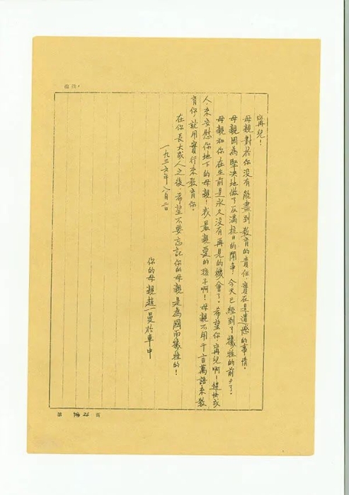 她給兒子寫下遺書: