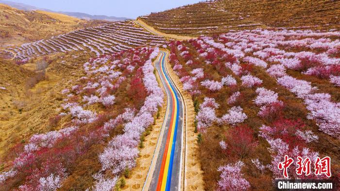 彭陽(yáng)梯田既是黃土高原上梯田的縮影,也是黃土高原生態(tài)治理的典范。如今,彭陽(yáng)金雞坪梯田公園、嘛喇灣梯田公園、青云灣梯田公園三大核心“五彩梯田”公園里,層層梯田如一曲曲曼妙婀娜的五線譜,勾勒出彭陽(yáng)大地的豐腴和壯闊。每年4月“山花旅游節(jié)”期間,漫山遍野的桃花、杏花將山間裝扮成花海,游人如織,在“77號(hào)彩虹路”加持下,隨處可見(jiàn)的“中國(guó)最美旱作梯田”已成為新晉網(wǎng)紅打卡地。