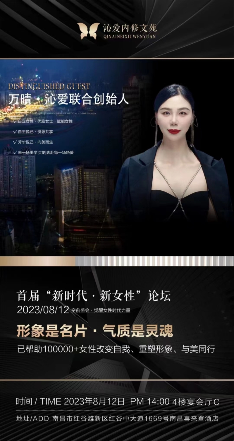 8月12日下午,由沁愛女子內修文苑等品牌方聯(lián)合發(fā)起的2023首屆“新時代.新女性”論壇在江西省南昌市喜來登大酒店順利召開,活動邀請了知名電視人胡劍云老師蒞臨現場分享《女性在職場和家庭中如何有效溝通?》,胡劍云老師作為全國著名電視欄目《金牌調解》的首席調解員,其在節(jié)目中的發(fā)言睿智風趣、發(fā)人深省,廣受觀眾好評,本次活動,胡劍云老師給廣大女性朋友分享了如何在職場和家庭中建立親密關系的秘訣,贏得了廣大現場觀眾的陣陣掌聲。此外,該活動還邀請到了沁愛商學院創(chuàng)始人、沁愛女子文苑創(chuàng)始人、實戰(zhàn)派形象美學講師萬晴老師授課,萬晴老師帶來的《形象是名片,氣質是靈魂》則從女性的形象氣質角度,生動闡述了女性打造自我形象氣質的重要性,“一個女性擁有一個好的形象和氣質,就是一張最好的名片”、“當你開始愛自己,你就充滿吸引力”,活動現場,萬晴老師金句頻出,廣大女性觀眾紛紛表示受益匪淺?;顒拥淖詈蟓h(huán)節(jié),還邀請到了香港城市大學理學博士蔚希光先生給大家?guī)硪粓觥度绾魏侠碣Y產配置》的理財課程。