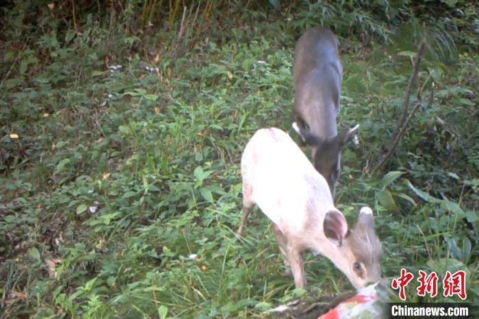 中新網(wǎng)重慶8月15日電 (梁欽卿)陰條嶺發(fā)現(xiàn)新的白化動(dòng)物品種。重慶陰條嶺國(guó)家級(jí)自然保護(hù)區(qū)管理事務(wù)中心15日對(duì)外發(fā)布,保護(hù)區(qū)的紅外相機(jī)近日拍攝到白化毛冠鹿的清晰影像。這是陰條嶺保護(hù)區(qū)自2015年開(kāi)展紅外相機(jī)監(jiān)測(cè)野生動(dòng)物工作以來(lái)首次拍攝到白化毛冠鹿,也是重慶市首次監(jiān)測(cè)到。