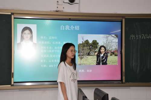 為了調(diào)動(dòng)孩子們的積極性、主動(dòng)性,迅速拉進(jìn)彼此間的距離,實(shí)踐隊(duì)員決定利用PPT進(jìn)行別致有趣的自我介紹。在第一節(jié)課上,實(shí)踐隊(duì)員們和孩子們輪流走上講臺(tái)介紹自己,初見時(shí)孩子們還稍微有些拘謹(jǐn)緊張,但經(jīng)過破冰活動(dòng)孩子們逐漸變得活躍起來,積極參與到分享、情景模擬等環(huán)節(jié)。