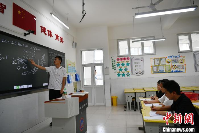 “大家看這條輔助線應(yīng)該畫在哪?”教室中,18歲的準(zhǔn)大一新生盧鵬博正拿著三角板為學(xué)生們輔導(dǎo)數(shù)學(xué)。
