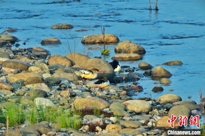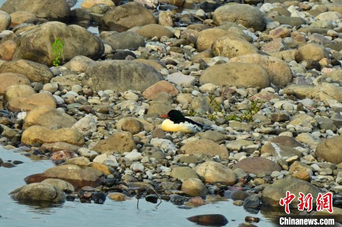 中新網宜昌8月16日電 (董曉斌 李永梅 馬彥金)有著“鳥中大熊貓”之稱的中華秋沙鴨近日出現(xiàn)在湖北省宜都市清江水域,這是這種珍稀候鳥首次于夏季出現(xiàn)在宜都清江水域。