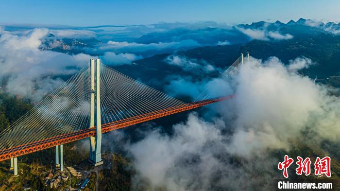 夏末秋初的清晨,位于貴州六盤水市水城區(qū)境內(nèi)的世界第一高橋——北盤江大橋云霧繚繞,宛若“浮”在云端。