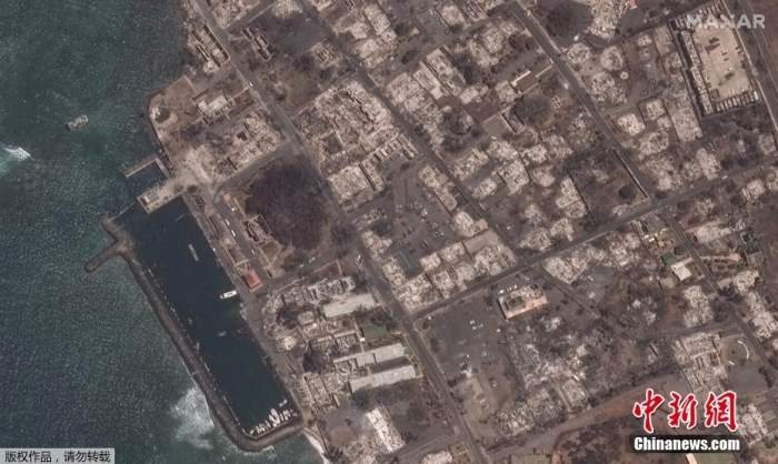 毛伊島拉海納小鎮(zhèn)火災后的衛(wèi)星影像。