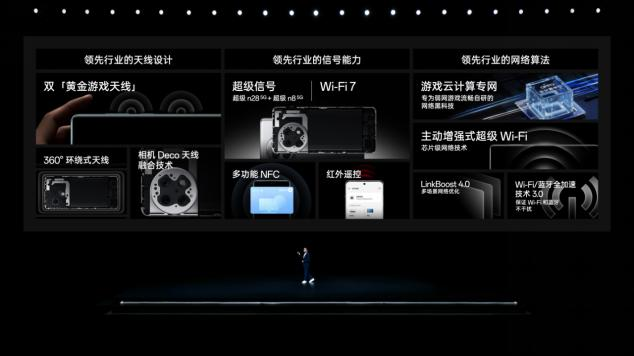 網(wǎng)絡方面,一加 Ace 2 Pro 在腰部新增了雙黃金游戲天線,手機無論怎么握持,都能保持超強的信號連接。同時,一加 Ace 2 Pro 借助一加自研“低頻天線小型化技術(shù)”, 將鏡頭模組區(qū)域做成天線,天線能力得到了大幅提升。在行業(yè)最常用的N28和N8頻段,一加 Ace 2 Pro 將此前的 2 條天線升級為了 4 條,實現(xiàn)了「超級 N28/N8 5G 信號」,帶來更快、更穩(wěn)定的 5G 網(wǎng)絡體驗。一加 Ace 2 Pro 還全面接入了 Wi-Fi 7 協(xié)議,通過多重網(wǎng)絡技術(shù)專項優(yōu)化,帶來更高速、更穩(wěn)定、更低延遲和更廣覆蓋范圍的 Wi-Fi 使用體驗。在此基礎上,一加 Ace 2 Pro 同樣支持“主動增強式超級 Wi-Fi”、“LinkBoost 4.0”、“游戲云計算專網(wǎng)”等多項網(wǎng)絡技術(shù),在各類場景內(nèi)都能為用戶帶來快速、穩(wěn)定的網(wǎng)絡使用體驗。