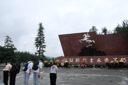 “何挺穎烈士永垂不朽”,在革命烈士的銅像前,成員肅穆立正,懷著崇敬的心情低頭默哀。何挺穎革命先烈們的艱辛奮斗和無私奉獻給予了我們莫大的震撼,激發(fā)了大家對黨的熱愛和對國家的責(zé)任感。