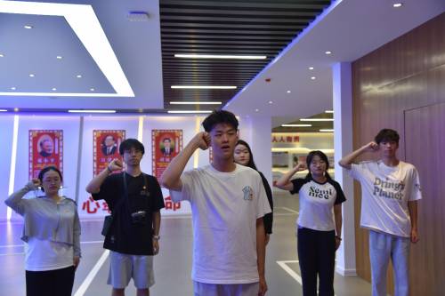 李昊軒同學(xué)帶領(lǐng)成員進行宣誓:“我們決心以黨的初心為引領(lǐng),將實踐所學(xué)運用到日常生活中,不僅從自身做起,也要敦促身邊的人共同參與禁毒工作。”
