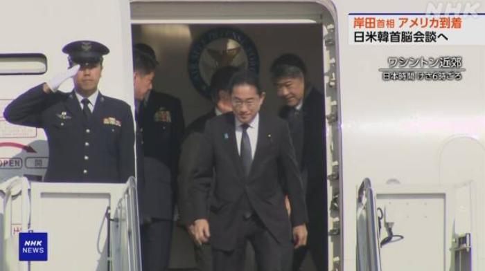 當(dāng)?shù)貢r間17日下午,日本首相岸田文雄抵達(dá)美國華盛頓。圖片來源:日本放送協(xié)會(NHK)報道截圖