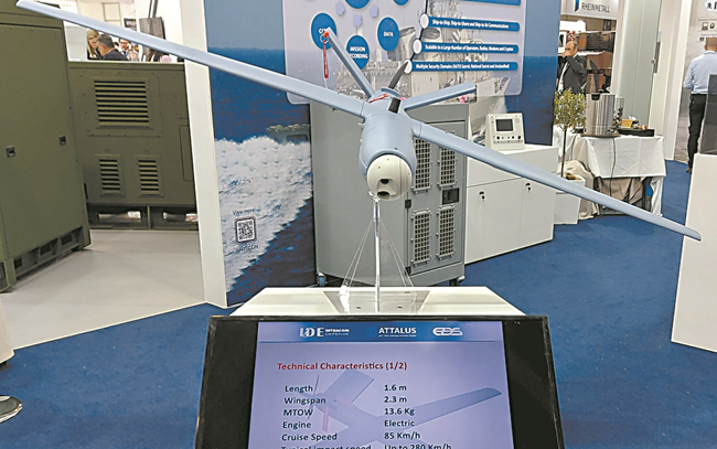 今年5月,在雅典舉行的希臘國際軍事防務(wù)展覽會上,希臘一家企業(yè)展示了其研發(fā)的ATTALUS巡飛彈。這種固定翼的“電動無人機(jī)”,據(jù)稱可打擊裝甲目標(biāo)。