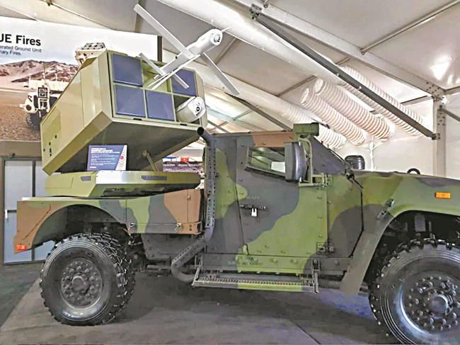 集成在聯(lián)合輕型戰(zhàn)術(shù)車輛上的“英雄”-120巡飛彈。資料圖片