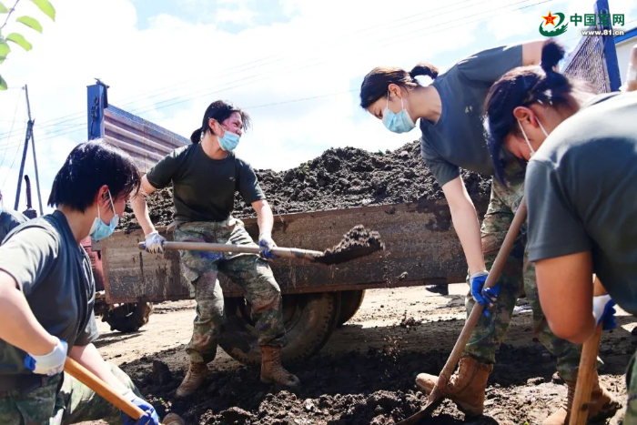李夢潔和戰(zhàn)友們在清淤。