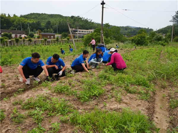 圖為實(shí)踐團(tuán)成員在田間除草
